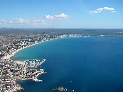 - auf einen ca. 4,5 km langen Strandabschnitt an der Südküste von Mallorca, der sich in der Bucht von Palma erstreckt zwischen Can Pastilla und S’Arenal, das schon zu Llucmajor gehört.
