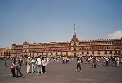 Am Zócalo befinden sich einige der wichtigsten Institutionen des Landes, darunter der Sitz des Präsidenten von Mexiko (Palacio Nacional, 1792), die Kathedrale von Mexiko-Stadt (Catedral Metropolitana, 1573–1667, die größte Kathedrale des Landes) und das Rathaus (Palacio Municipal, 1720, Sitz des Gouverneurs des Bundesbezirks (Distrito Federal) und des Stadtparlaments).
