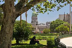 Die Einweihung des Kongresspalastes 1906, damals zwei Blöcke westlich der Plaza Lorea gelegen, machten aus ästhetischen und stadtplanerischen Gründen die Neuanlage eines adäquaten Platzes notwendig. Am 30. September 1908 unterschrieb Präsident José Figueroa Alcorta das Bundesgesetz 6286, mit dem das project beschlossen wurde. Der Landschaftsarchitekt und damalige Direktor der städtischen Parkanlagen Carlos Thays sah hierfür ein circa drei Hektar großes Grundstück vor dem Kongresspalast, parallel zur Avenida de Mayo vor, über das die Calle Montevideo führte. Der Entwurf von Thays wurde genehmigt, da für die Anlage nur wenige Gebäude abgerissen werden mussten.[3]