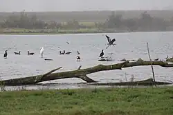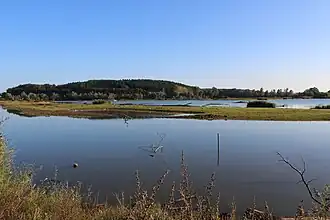 | Blick vom Beobachtungsturm aus nach Norden, rechts die Flachwasserzone | ||