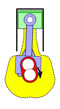 Der Begriff rührt aus der einer Geige ähnelnden Kontur her, den die äußersten Punkte des Pleuels während einer Drehung beschreiben. Bei der Konstruktion des Kurbelgehäuses muss ausreichend Freigang zwischen Pleuel und Gehäuse gewährleistet werden.