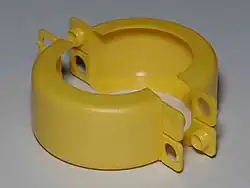 Die Schelle besteht aus zwei Kunststoff-Halbschalen, die durch präzise Zapfen und Bohrungen beim Verschließen eingerastet und mit einer Zange (Plombierzange) unlösbar verpresst werden. Beim Entfernen der Schelle wird sie für immer zerstört. Sie kann nicht wiederverwendet werden.