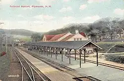 1850 erreichte die Eisenbahn Plymouth, als die Strecke von Concord nach Wells River in Vermont gebaut wurde. Diese verzweigte sich in Plymouth. Der Ast nach Wells River wurde 1853 fertig gestellt. Damit hatte Plymouth Anschluss an durchgehende Zugverbindungen nach Kanada. Dieser Streckenabschnitt war bis 1954 in Betrieb. Die in Plymouth abzweigende Strecke führte ab 1883 nach Lincoln. Die Züge von Kanada nach Boston hielten am Pemigewasset House zum Essen und je nach Fahrplan auch über Nacht.[5]