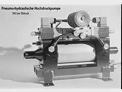 Ein pneumohydraulischer Druckübersetzer (auch Druckmultiplikator) ist eine Kolbenpumpe, bei der Druckluft auf eine Kolbenfläche wirkt, welche mit einem deutlich kleineren Kolben in einem ölgefüllten Zylinder verbunden ist.