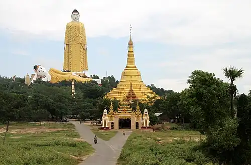 Ein 90 m langer liegender Buddha wurde 1991 erbaut; in seinem begehbaren Inneren sind mit bemalten Betonfiguren religiöse Szenen dargestellt. Dahinter erhebt sich die Laykyun Setkyar genannte 116 m hohe Statue eines stehenden Buddhas. Ein enormer sitzender Buddha und die Bodhi-Tataung-Pagode befinden sich nahebei. Auf einem Feld sitzen mehr als 1000 lebensgroße Buddhas, die zu den Großfiguren aufschauen und denen jeweils ein Schirm und ein Bodhi-Baum beigegeben ist. Von einem Aussichtsturm lässt sich das gesamte Areal gut überblicken.