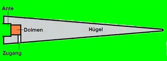 Bei südfranzösischen Dolmen (wie Ronc Traoucat) ist der Übergang vom älteren Tumulus zum jüngeren Podium oder Podest erkennbar. Einige Dolmen wie der Dolmen von Aillevans und der von Brévilliers lagen ursprünglich in Rundhügeln und wurden zu Podiumdolmen umgebaut.