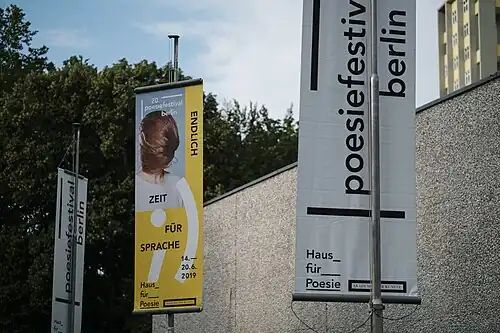 Jedes Jahr treffen sich Dichter und Künstler aus aller Welt zum Poesiefestival Berlin – Eigenschreibweise: poesiefestival berlin –, das jeweils für etwa neun Tage an zentralen Orten in Berlin auf eine primär performative Weise Lyrik präsentiert. Das 2000 gegründete und vom Hauptstadtkulturfonds gemeinsam mit privaten Sponsoren geförderte Festival wird vom Haus für Poesie (ehemals Literaturwerkstatt Berlin) veranstaltet. Die Akademie der Künste ist Kooperationspartner und seit 2008 zentraler Austragungsort des Festivals.