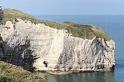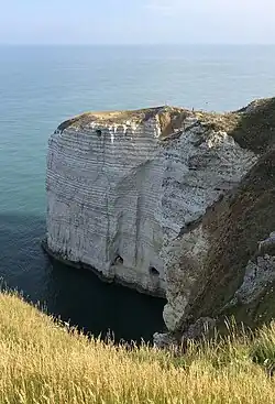 Der von braun-schwarzen Lagen aus Feuersteinen durchzogene weiße Kreidefelsen gehört zum Gebiet der Gemeinde Étretat. Südlich schließt sich der Strand Plage du Tilleul an, der sich bis zum Pointe du Fourquet erstreckt. Nördlich befindet sich die bekannte Felsformation Manneporte.