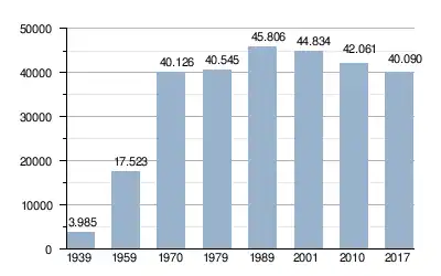 Quellen: 1939: [1], 1959 [5], 1970 [6], 1979 [7], 1989–2017 [1]