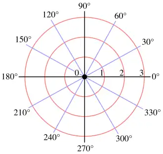 In der Mathematik und Geodäsie versteht man unter einem Polarkoordinatensystem (auch: Kreiskoordinatensystem) ein zweidimensionales Koordinatensystem, in dem jeder Punkt in einer Ebene durch den Abstand von einem vorgegebenen festen Punkt und durch den Winkel zu einer festen Richtung festgelegt wird.