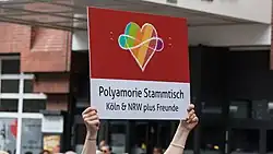 Banner des „Polyamorie Stammtisch Köln & NRW plus Freunde“ auf dem Cologne Pride 2019