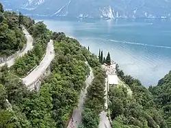 Abschnitt der Ponalestraße. Im Hintergrund Riva und der Monte Brione.