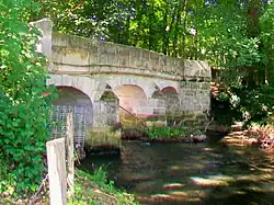 Die Brücke über den Fluss Epte verbindet die Départements Val-d’Oise und Eure. Die dreibogige Brücke wird an den Pfeilern von dreieckigem Strebewerk verstärkt.