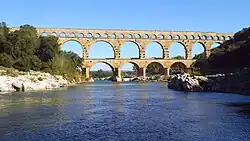 Der Pont du Gard war Teil einer etwa 50 km langen Wasserleitung, mit der Wasser von den Quellen nahe Ucetia (Uzès) zur römischen Stadt Nemausus (Nîmes) transportiert wurde. Die Brücke ist 49 m hoch und umfasst drei Etagen: