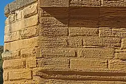 Überall am Mauerwerk ragen noch unregelmäßige Steine hervor, an denen bei der Konstruktion die Baugerüste verankert wurden. Man ließ sie vermutlich nach der Fertigstellung stehen, um sie bei eventuellen Reparaturen wieder nutzen zu können. Es ist aber auch möglich, dass die Fassade aus Geldmangel am Ende nicht mehr begradigt wurde und die überstehenden Steine deshalb belassen wurden.