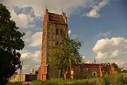 Die bis 1945 evangelische Dorfkirche von Allenau stammt aus der Zeit um 1400 und ist ein Saalbau unter Verwendung vieler Feldsteine für Seitenmauern und Turmunterbau[8]. Der obere Teil des Turms und die Sterngewölbe der Sakristei stammen vom Anfang des 16. Jahrhunderts, und unter der Tünche im Kircheninnern befinden sich alte Wandmalereien.