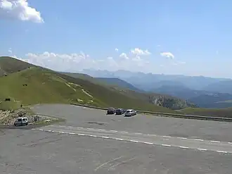 Blick über den oberen Teil der Passstraße zum Col d’Erroymendi -