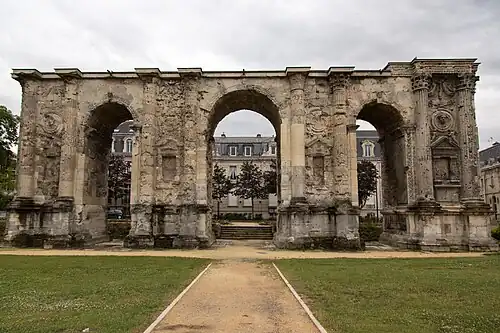 Die Porte de Mars ist ein gallo-römischer Ehrenbogen in Reims (Frankreich), dem antiken Durocortorum.