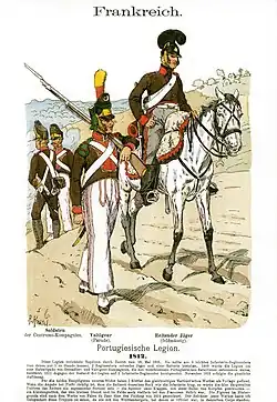 Die Portugiesische Legion war ursprünglich 9000 Mann stark und wie viele „Fremdenlegionen“ Teil der Grande Armée. Sie wurde nach der Eroberung Portugals durch die Franzosen unter General Jean Andoche Junot auf Befehl von Napoleon am 12. November 1807 aufgestellt. Organisiert wurde sie im Februar 1808 nach französischem Reglement und wurde aus den besten Einheiten der aufgelösten portugiesischen Armee aufgestellt, inklusive einer Elite-Legion aus leichten Truppen. Die Legion wurde im April 1808 nach Salamanca verlegt und durchquerte Spanien auf dem Marsch nach Frankreich, wo es in Grenoble Garnison bezog. Auf dem Marsch durch Spanien sind ungefähr die Hälfte (ca. 4500 Mann) der Legionäre desertiert, kehrten nach Portugal zurück und schlossen sich dem portugiesischen Widerstand gegen die französischen Besatzer an.