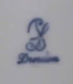 Im Regelfall sind die Marken in Blau unter der Glasur angebracht. Jedoch kommen sie auch als Aufglasurmarken in Blau, in Eisenrot und in Gold vor. Die erste Marke war das T über einem Fisch. Seit 1901 wird das gekreuzte S und P verwendet. Am 21. August 1902 wurden die verschlungenen S und P über dem Wort Dresden als Marke eingetragen.