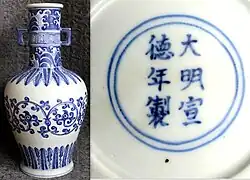 - Pinselmarke: Mit Hilfe eines Pinsels wird nach dem Glasurbrand die Marke aufgemalt.