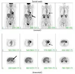 - ↑ a b c d e f Sally F. Barrington, Michael N. Maisey, Richard L. Wahl: Atlas of Clinical Positron Emission Tomography. Second Edition, Hodder Arnold 2006, S. 24, 25, ISBN 0-340-81693-7