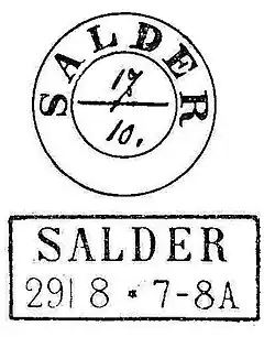Salder erhielt am 1. April 1851 seine eigene Postexpedition. Erster Postexpedient war Friedrich Schulze (1851–60), er verwendete den Zweikreissehnenstempel mit handschriftlicher Datumsangabe, bis 1854. Gefolgt von einem Rechteckstempel. Ab 1856, mit der Einführung der braunschweigischen Briefmarken kam zusätzlich der Rostrautenstempel mit der Nummer „36“ zur Entwertung der Marken hinzu.