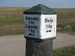 In und um den Ort stehen mehrere historische Wegesäulen. Diese wurden vor einigen Jahren restauriert und sind nun wieder gut lesbar.