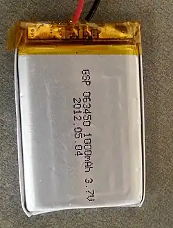 Lediglich die äußeren Anschluss-Elektroden verlassen die beutelförmige Zellumhüllung in Form von Lötfahnen. Am negativen Pol wird dabei meist Kupfer verwendet. Als Ableiter für die positive Elektrode, wird meist Aluminium eingesetzt.[4][2]