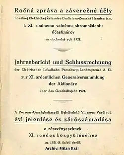 Infolge der Abtretung Oberungarns an die neu gegründete Tschechoslowakei firmierte die P.O.H.É.V. ab 1920 als Lokálnej Elektrickej Železnice Bratislava-Zemská Hranica, kurz B.Z.H. Nachdem außerdem die NÖLB durch die Nachwirkungen des Ersten Weltkriegs in finanzielle Schwierigkeiten gerieten, übernahm zum 1. Mai 1921 die kommunale Bratislavská mestská elektrická železnica (B.M.E.Ž.) – ab 1922 Bratislavská elektrická účastinná spoločnosť (B.E.Ú.S.) genannt, den Betrieb des tschechoslowakischen Abschnitts der Pressburger Bahn.