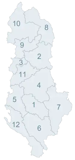 | Qark | Kreise innerhalb der Qarks | Sitz der Präfektur | Nr. | ![]() |