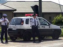 Die Polizei der Präfektur Osaka (Ōsaka-fu keisatsu jap. 大阪府警察, kurz Ōsaka-fukei 大阪府警 oder bei eindeutigem Kontext nur fukei 府警) ist mit über 20.000 Polizisten ist die zweitgrößte Präfekturpolizei des Landes nach der Keishi-chō der Präfektur Tokio. Wie in allen Präfekturen operiert sie unter Aufsicht der Kommission für öffentliche Sicherheit; deren fünf Mitglieder werden vom Gouverneur mit Zustimmung des Parlaments für dreijährige Amtszeiten ernannt, drei Amtszeiten in Folge sind möglich. Für die regionale Koordination, Ausbildung und Ausstattung durch die nationale Polizeibehörde ist die Polizei von Osaka neben denen von Kyōto, Hyōgo, Shiga, Nara und Wakayama dem regionalen Polizeiamt Kinki (Kinki kanku keisatsu-kyoku 近畿管区警察局) zugeordnet. Präfekturweit gibt es über 60 Polizeireviere und über 600 kōban 交番 und chūzaisho 駐在所 (ländliche Polizeihäuser).[12][13][14]