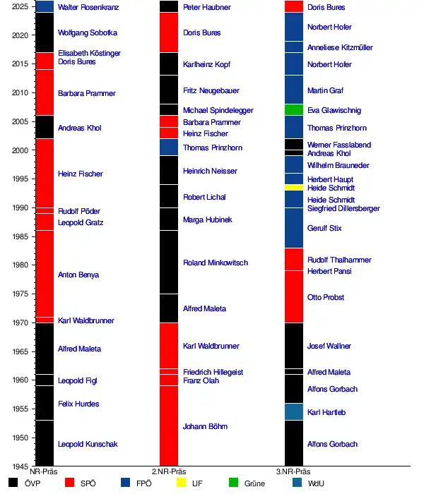 - ↑ Präsidium des Nationalrats. Informationen über das Präsidium und die Präsidialkonferenz des Nationalrats auf der Website des österreichischen Parlaments, abgerufen am 24. Oktober 2024. Hierzu: Wahl und politische Praxis.
