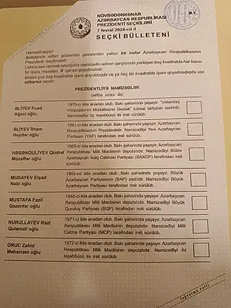 | Präsidentschaftswahl in Aserbaidschan 2024 | ||||||||||||||||||