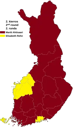 | Kandidaten | Martti Ahtisaari | Elisabeth Rehn | |||||||||||||||||