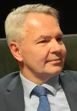 Grünen-Kandidat Pekka Haavisto hat angekündigt, dass Finnland Frieden und Stabilität in der Welt fördern sollte. Haavisto sagte, er stehe entschieden gegen die Schaffung von Feindbildern und Diskriminierung jeglicher Art.[48] Haavisto lehnt die NATO-Mitgliedschaft und ein Referendum über den Beitritt ab.[49]