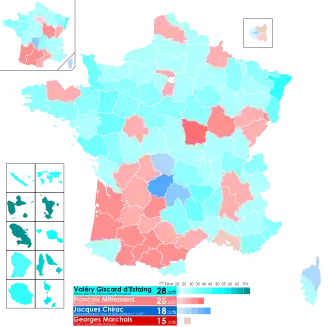 | Valéry Giscard d’Estaing | Union pour la démocratie française | 8.222.432 | 28,3 | 14.642.306 | 48,2 | |