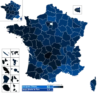 Überraschend errang im ersten Wahlgang der Kandidat der rechtsextremen Partei Front National, Jean-Marie Le Pen, mehr Stimmen als der sozialistische Bewerber, der amtierende Premierminister Lionel Jospin, und zog damit statt Jospin in die Stichwahl gegen den wieder antretenden Amtsinhaber Jacques Chirac aus dem bürgerlich-rechten gaullistischen Lager ein. Um einen Sieg Le Pens zu verhindern, gaben für diesen zweiten Wahlgang auch weite Teile der linken Parteien eine Wahlempfehlung für Chirac; dieser wurde mit 82,21 % der Stimmen in eine zweite Amtszeit gewählt. Durch eine von Chirac selbst veranlasste Verfassungsänderung wurde er – wie seine Amtsnachfolger – dabei nur für fünf Jahre gewählt, während sein erstes Mandat wie diejenigen seiner Vorgänger sieben Jahre gedauert hatte.
