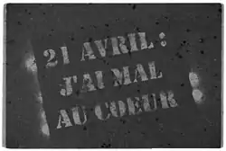 Eine nach dem ersten Wahlgang auf die Straße gesprühtes Graffito: 21 Avril: J'ai mal au cœur („21. April: mir ist übel“).