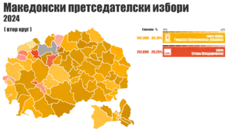 Die Präsidentschaftswahl in Nordmazedonien 2024 war die 7. Wahl des mazedonischen Präsidenten.[1] Sie wurde auf den 24. April 2024 angesetzt, bei der jedoch kein Kandidat die absolute Mehrheit erreicht hat. Am 8. Mai 2024 fand deshalb eine Stichwahl statt. Im zweiten Wahlgang setzte sich die von der VMRO-DPMNE aufgestellte Kandidatin Gordana Siljanovska-Davkova gegen den amtierenden Präsidenten Stevo Pendarovski durch, sie erhielt 65 % der Stimmen bei einer Wahlbeteiligung von 47 %. Bei der gleichzeitig zur Stichwahl durchgeführten Parlamentswahl gewann ebenfalls die konservative Partei VMRO-DPMNE.[2]