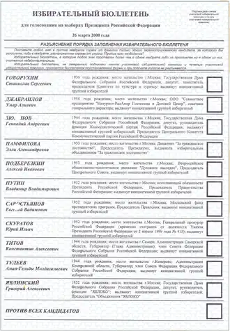 | Präsidentschaftswahl in Russland 2000 | |||||||||||||||||