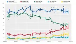 | Gallup Korea[28] | 07.04.2017 | 38 % | 3 % | 35 % | 4 % | 7 % | 0 % |