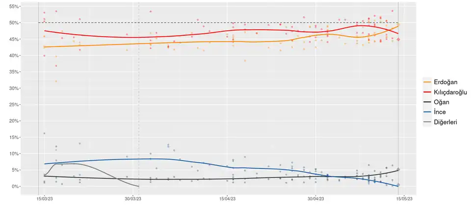 - ↑ Gerçek Gündem: En yeni tarihli anket: İşte seçime 4 gün kala sahada son durum! 10. Mai 2023, abgerufen am 13. Mai 2023 (türkisch).