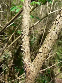 Die wechselständig angeordneten Laubblätter sind bei einer Länge von 7 bis 22 cm in Blattstiel und Blattspreite gegliedert. Der Blattstiel ist 1 bis 9 cm lang. Die gefiederte Blattspreite besteht aus drei Blättchen. Die drei Blättchen sind bei einer Länge von 3 bis 15 cm eiförmig, wobei das mittlere größer ist als die beiden seitlichen. Die Ränder der Blättchen sind gesägt. Die Nebenblätter sind bei einer Länge von 5 bis 10 mm linealisch.[1][2]