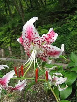 - Lilium speciosum var. gloriosoides Baker: schmalere Tepale, zur Basis hin purpurn überlaufen, auf Taiwan und in China endemisch