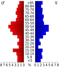 Auf das gesamte County bezogen setzte sich die Bevölkerung zusammen aus 18,70 % Einwohnern unter 18 Jahren, 4,30 % zwischen 18 und 24 Jahren, 20,00 % zwischen 25 und 44 Jahren, 32,90 % zwischen 45 und 64 Jahren und 24,10 % waren 65 Jahre alt oder darüber. Das Durchschnittsalter betrug 49 Jahre. Auf 100 weibliche Personen kamen 106,70 männliche Personen, auf 100 Frauen im Alter ab 18 Jahren kamen statistisch 106,10 Männer.