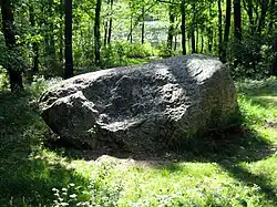 Am Nordostufer des Strehlesees nahe dem Dorf liegt ein aus dem Gebiet des heutigen Schweden stammender Findling, ein Relikt der eiszeitlichen Vergletscherung. Er besteht aus Revsund-Granit,[13] ist 3,85 Meter lang, 2,85 Meter breit, 1,45 Meter hoch, hat einen Umfang von 10,3 Metern und soll etwa 23 Tonnen wiegen. An seiner Nordseite wurde eine Inschrift zum Gedenken an Kaiser Wilhelm II. angebracht.