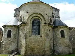 Die heutige Choranlage entstammt zweifellos dem 12. Jahrhundert. Sie besteht aus einer Art Querhaus mit drei eingewölbten Apsiden, von denen die mittlere stärker gestreckt und gegenüber den beiden anderen erhöht ist – außerdem ist ihre Wand im unteren Bereich durch zwei halbhohe Strebepfeiler stabilisiert. Jede der drei Apsiden hat ein Ostfenster; die äußeren Apsiden verfügen jeweils zusätzlich über ein seitliches Fenster. Die Mittelapsis hat stattdessen zwei kleine Rundfenster (oculi), die in der Zeit der Romanik bzw. der Frühgotik eher selten anzutreffen sind – möglicherweise sind sie in der Renaissance bzw. im Barock oder aber im 19. Jahrhundert hinzugefügt worden. Wie bei vielen Kirchen im Poitou fehlt ein alles überragender Vierungsturm.