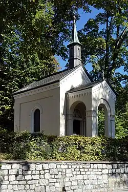 Die neoromanische Kapelle wurde nach 1875 zur Erinnerung an den hier tödlich verunglückten Prinzen Karl von Bayern erbaut. Sie besteht aus dem von einem Satteldach mit bekrönendem Dachreiter bedeckten Kirchenraum und der dem Eingang vorangestellten offenen Arkadenvorhalle.