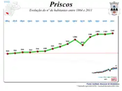 | Adresse der Gemeindeverwaltung: | Junta de Freguesia de Priscos Rua do Cidadão, nº11 4705–566 Priscos | ||||